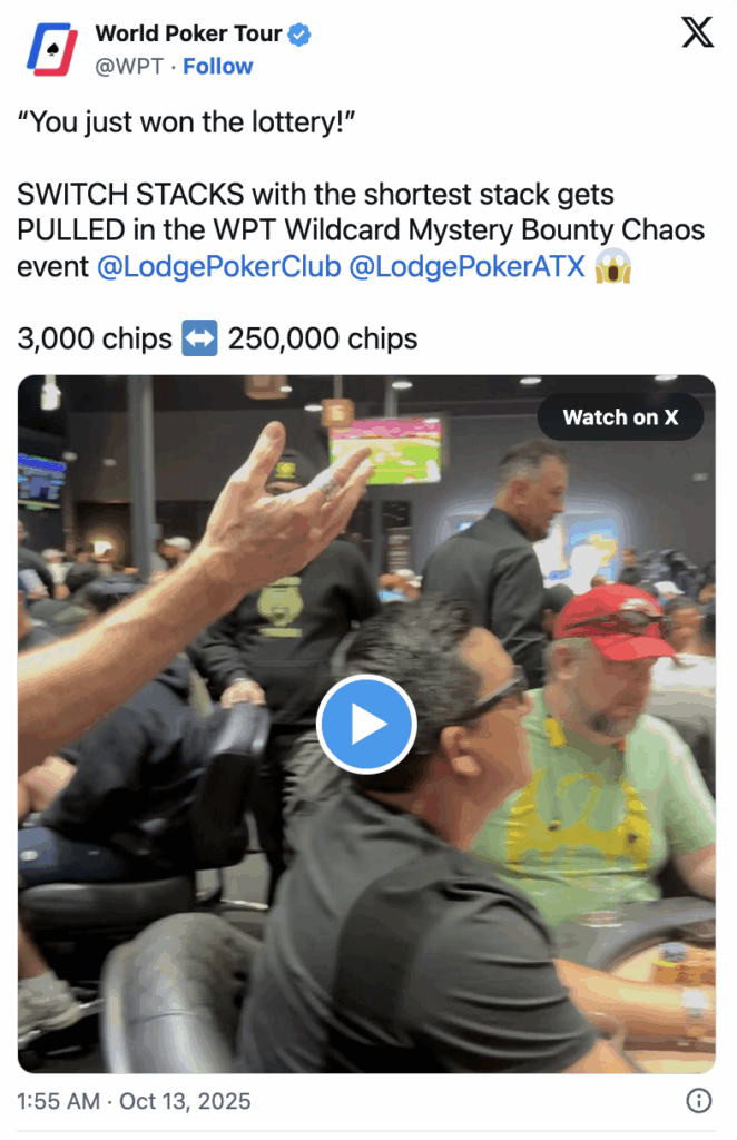 През октомври 2025 г. The Lodge в Тексас беше домакин на може би най-странния експеримент, който покер общността е виждала: две „диви“ събития в рамките на WPT Prime Lodge. Първото беше стриймвана кеш игра $5/10, озаглавена Heart Attack Poker, в която различни WPT посланици и създатели на съдържание играеха един срещу друг, докато бяха вързани към монитори за сърдечен ритъм в клуба.