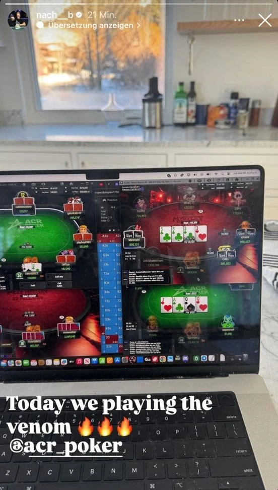 Случаят е прост: Nacho публикува сторита в Instagram, в които се вижда, че solver-ът GTO Wizard е отворен зад активните маси в ACR Poker.