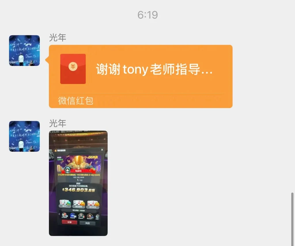 RealOA се свързал с него по време на пауза в WSOP Super Circuit Main Event и поискал съвет как да играе на финалната маса на $10,300 GGMillion$ в GGPoker. По-късно RealOA спечелил турнира и благодарил на Tony в група, в която е бил и третият — играч от Япония с ник Buzzcut.